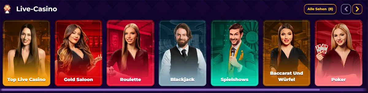 Unser Live Casino wird von Evolution Gaming betrieben. Wir bieten Live Roulette, Live Blackjack und Live Baccarat mit professionellen Dealern rund um die Uhr.