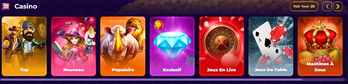 Royal Game Casino propose plus de 9 000 jeux dans sa bibliothèque, avec des machines à sous développées par des fournisseurs reconnus comme Microgaming, NetEnt et Pragmatic Play. Nous avons identifié les slots les plus demandées par les joueurs français, incluant les nouveautés exclusives et les jackpots progressifs les plus attractifs.